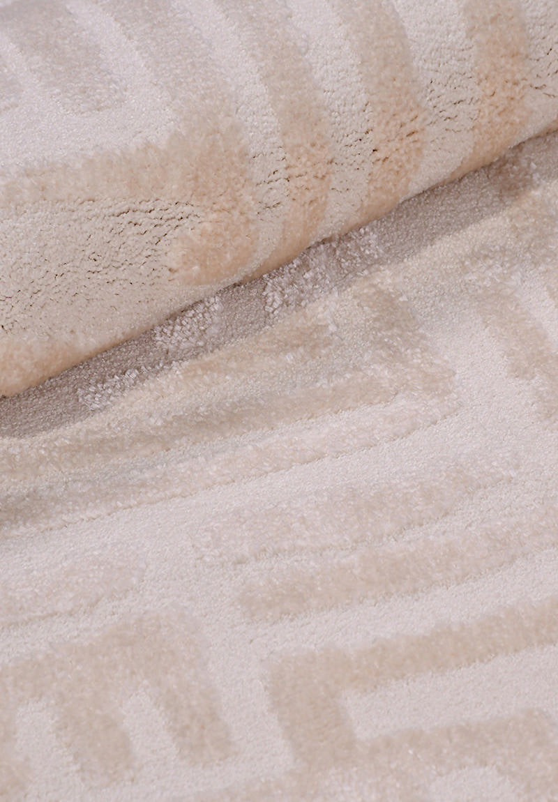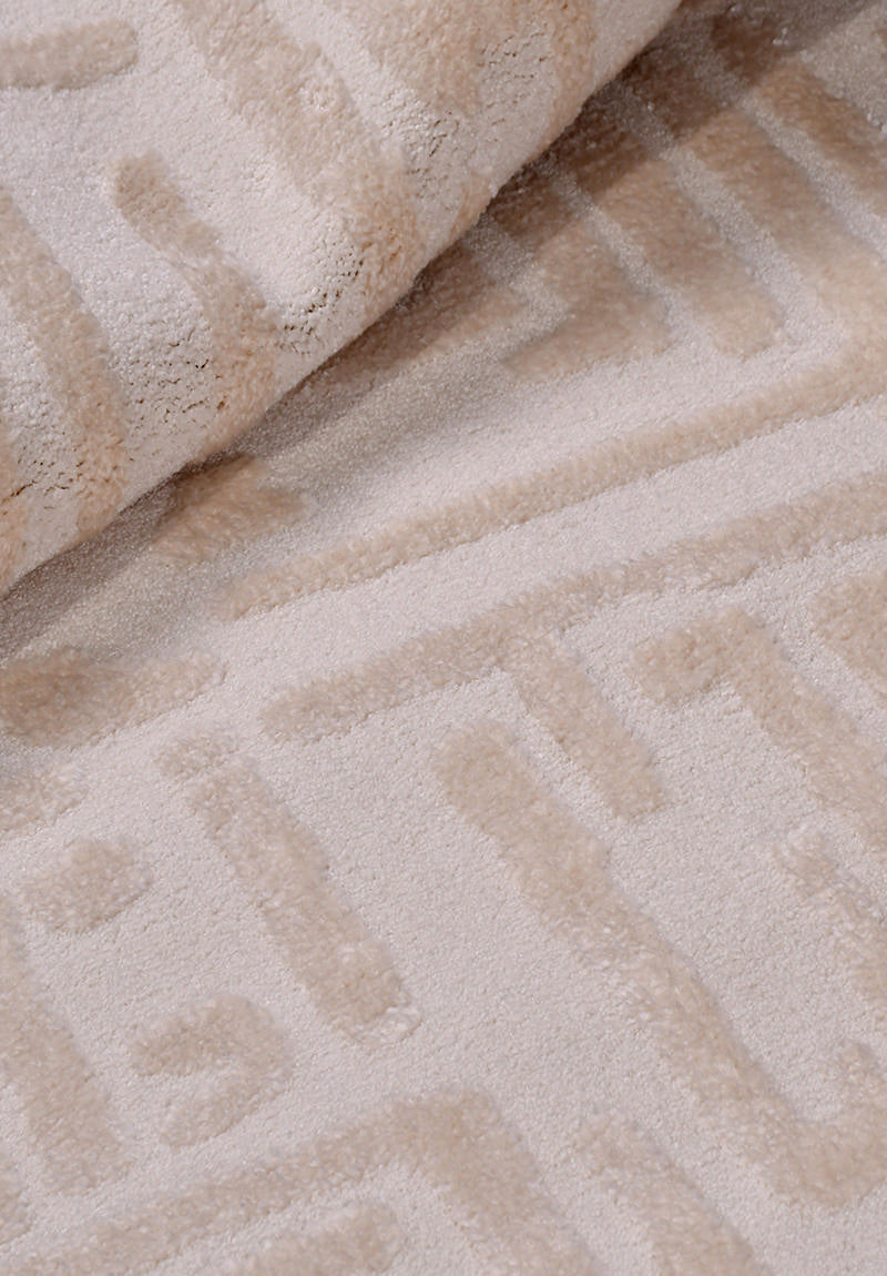 Florya Prisma är en lyxigt mjuk matta som kombinerar subtil elegans med modern design. Den ljusbeige färgen tillsammans med det diskreta ton-i-ton mönstret skapar en harmonisk och stilfull känsla i alla rum.