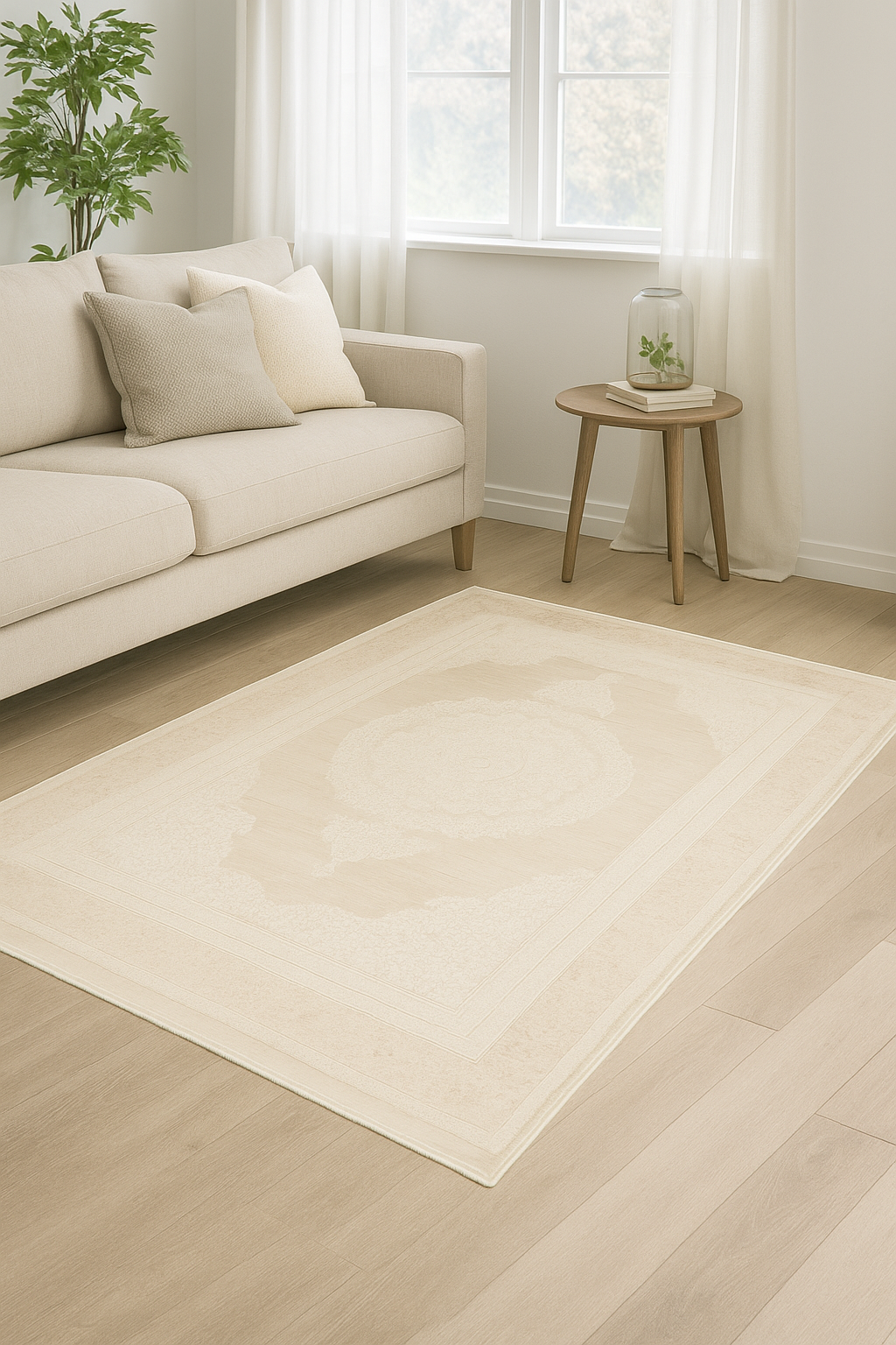 Bianca Elfenben är en klassisk matta med subtil prakt. Den centrala medaljongdesignen smälter in i den elfenbensfärgade basen med silkeslen precision. Denna matta för tankarna till kungliga salar och lugna interiörer där detaljer får tala i tysthet.