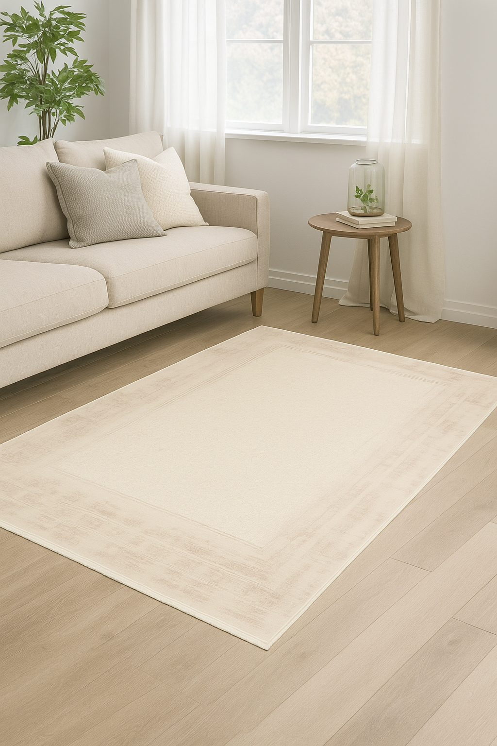 Bianca LjusRam är en hyllning till det minimalistiska i klassisk tappning. Den svagt ornamenterade ytan ramas in av en subtilt åldrad bård, vilket ger mattan ett harmoniskt och lugnt uttryck. Perfekt för ljusa och luftiga interiörer där balans och mjukhet står i centrum.