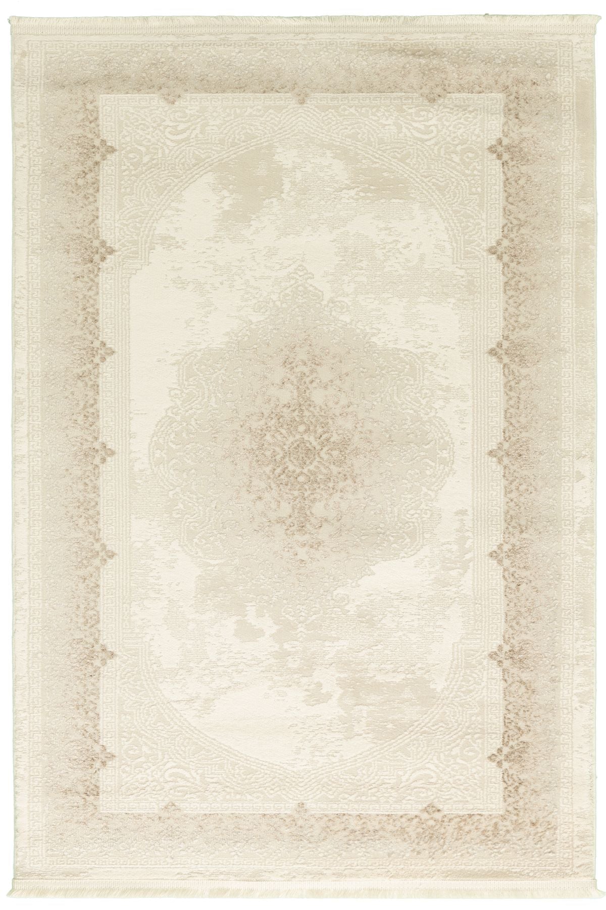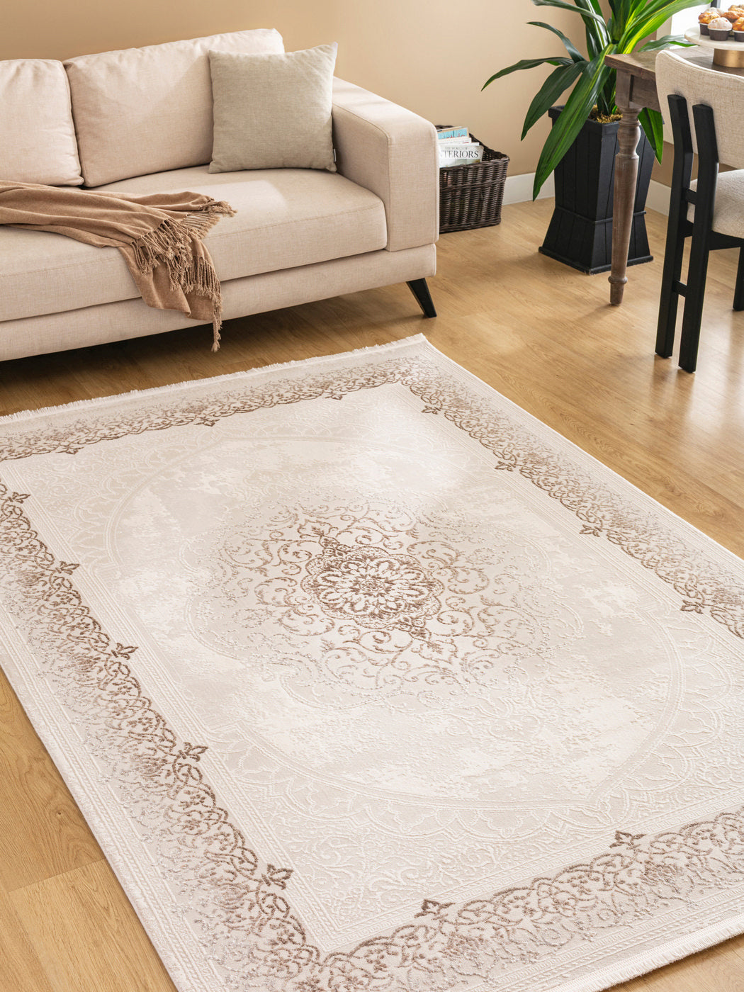Selanik Natur – Handvävd Beige Matta med Klassisk Frans och Skandinavisk Look