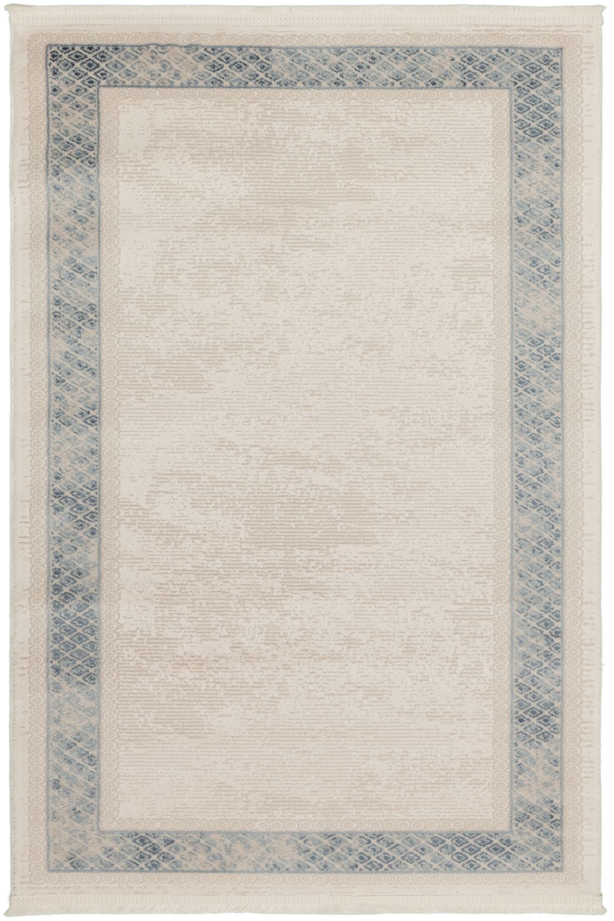 Bloom Frostkant utmärker sig med sin diskreta men ändå uttrycksfulla blå ram, som skapar en visuell kontrast mot den ljusa, rena mittytan. Den geometriska bården ger ett subtilt etniskt intryck och passar både klassiska och moderna inredningsstilar.