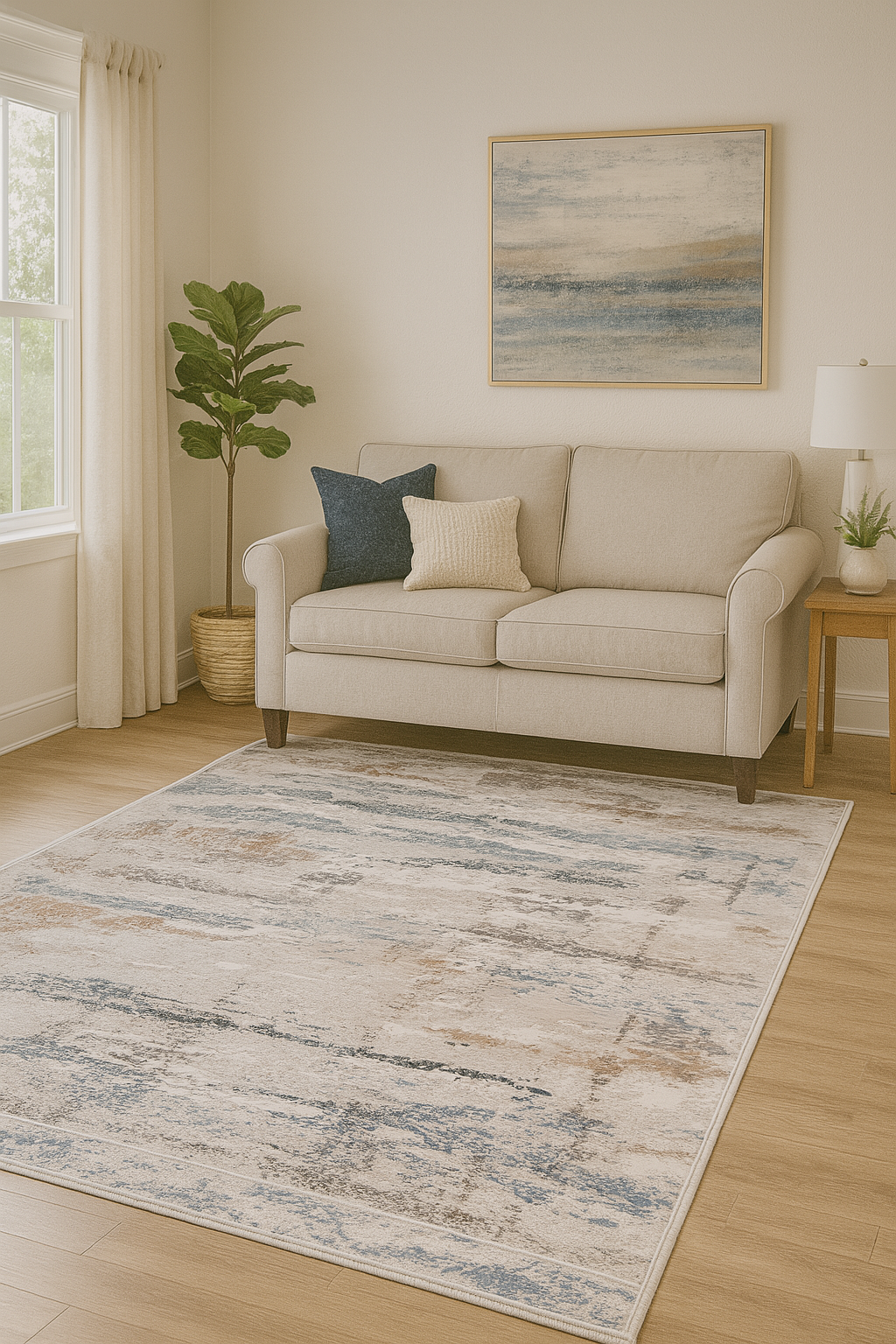 Sydney Calm – Sofistikerad Naturbeige Texturmatta med Harmonisk Ljusspel