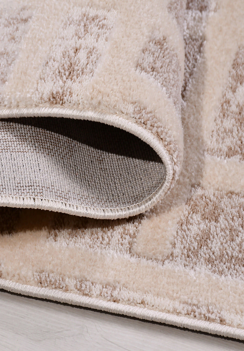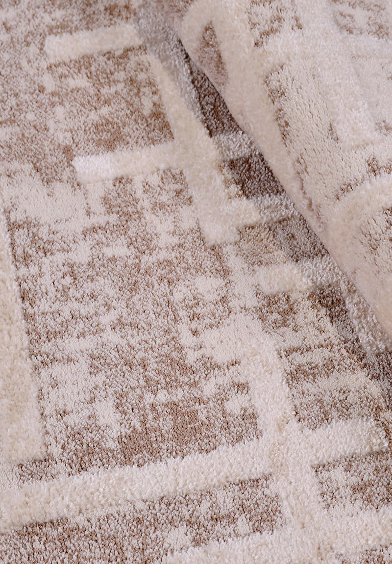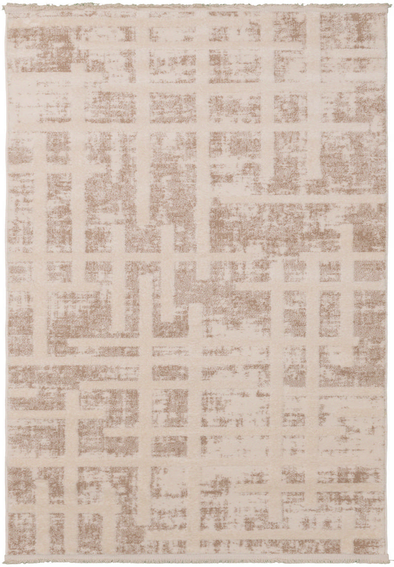 Florya Contrast är en stilfull och samtida matta som kombinerar mjuk komfort med ett distinkt, geometriskt mönster. Den varmvita basen bryts upp av ett markerat, tonat labyrintmönster som ger liv och djup till din inredning – utan att kännas överväldigande.