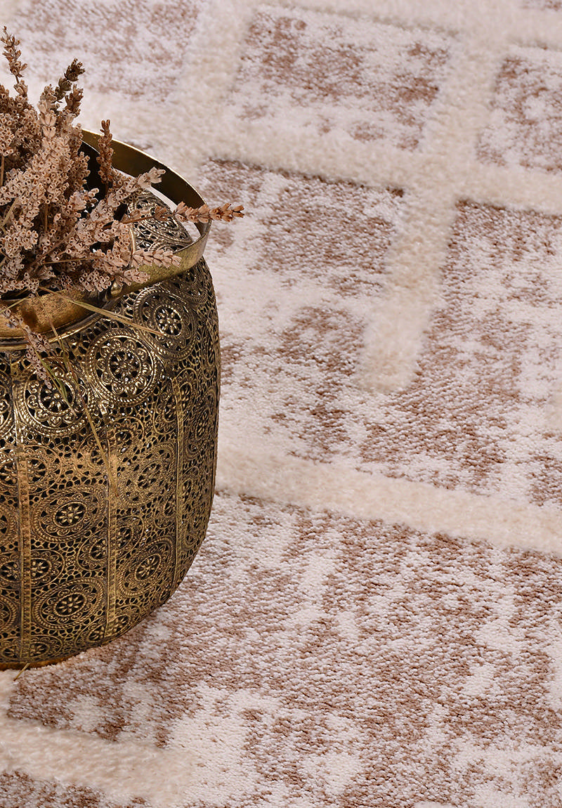 Florya Contrast – Mjuk Matta med Markerat Geometriskt Mönster i Varma Toner
