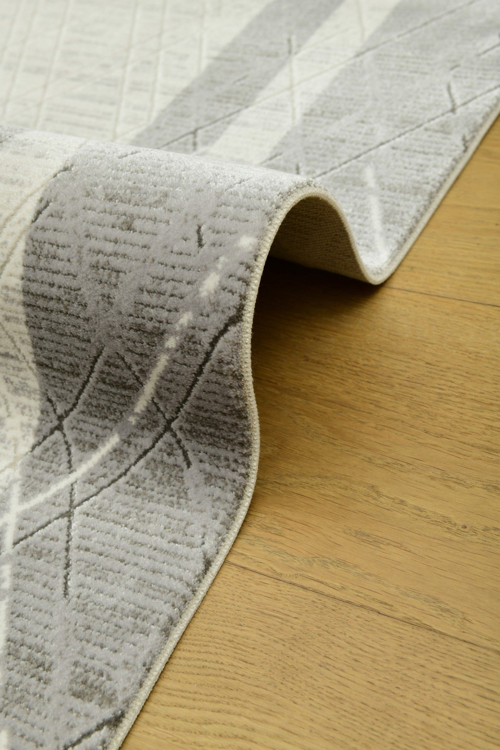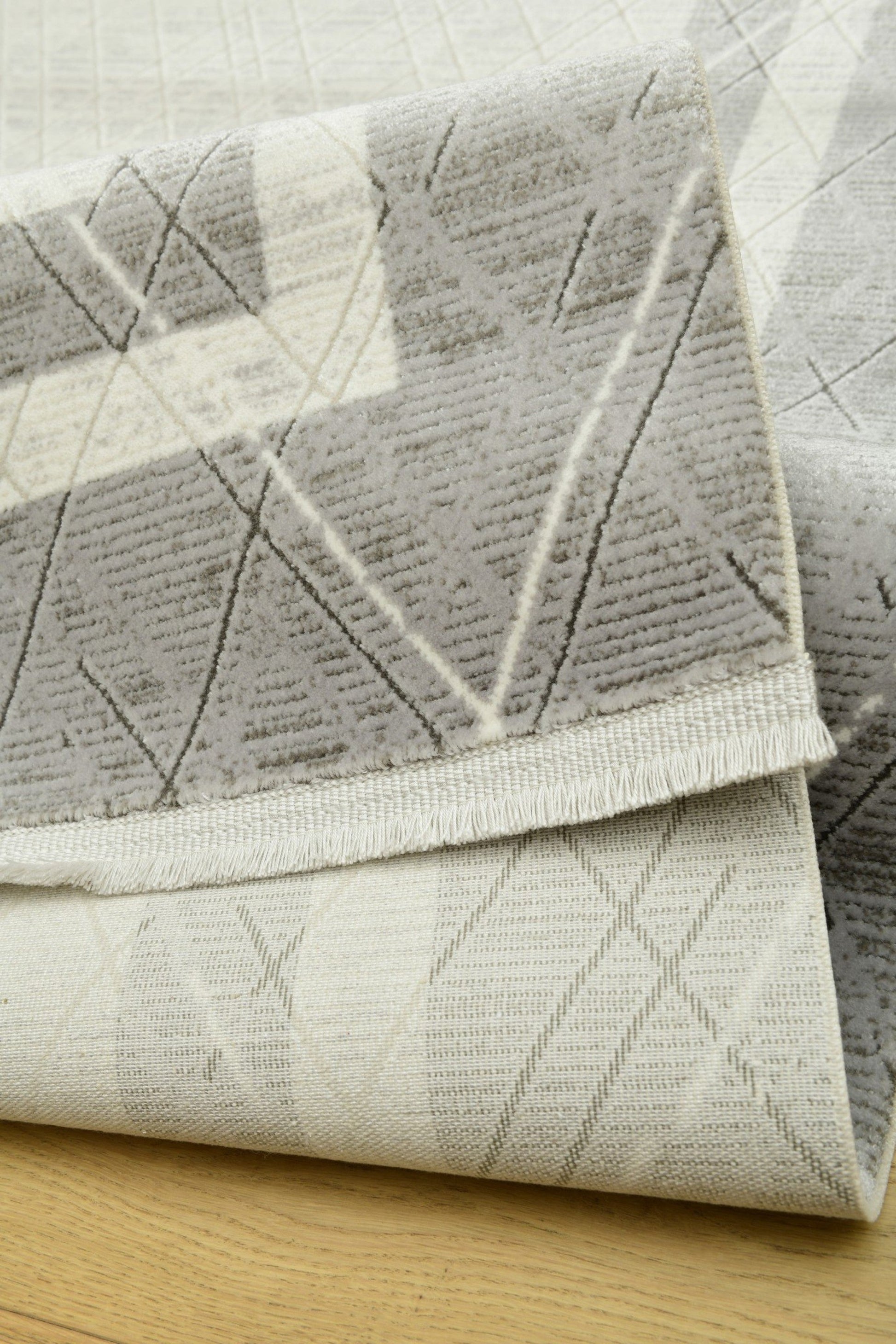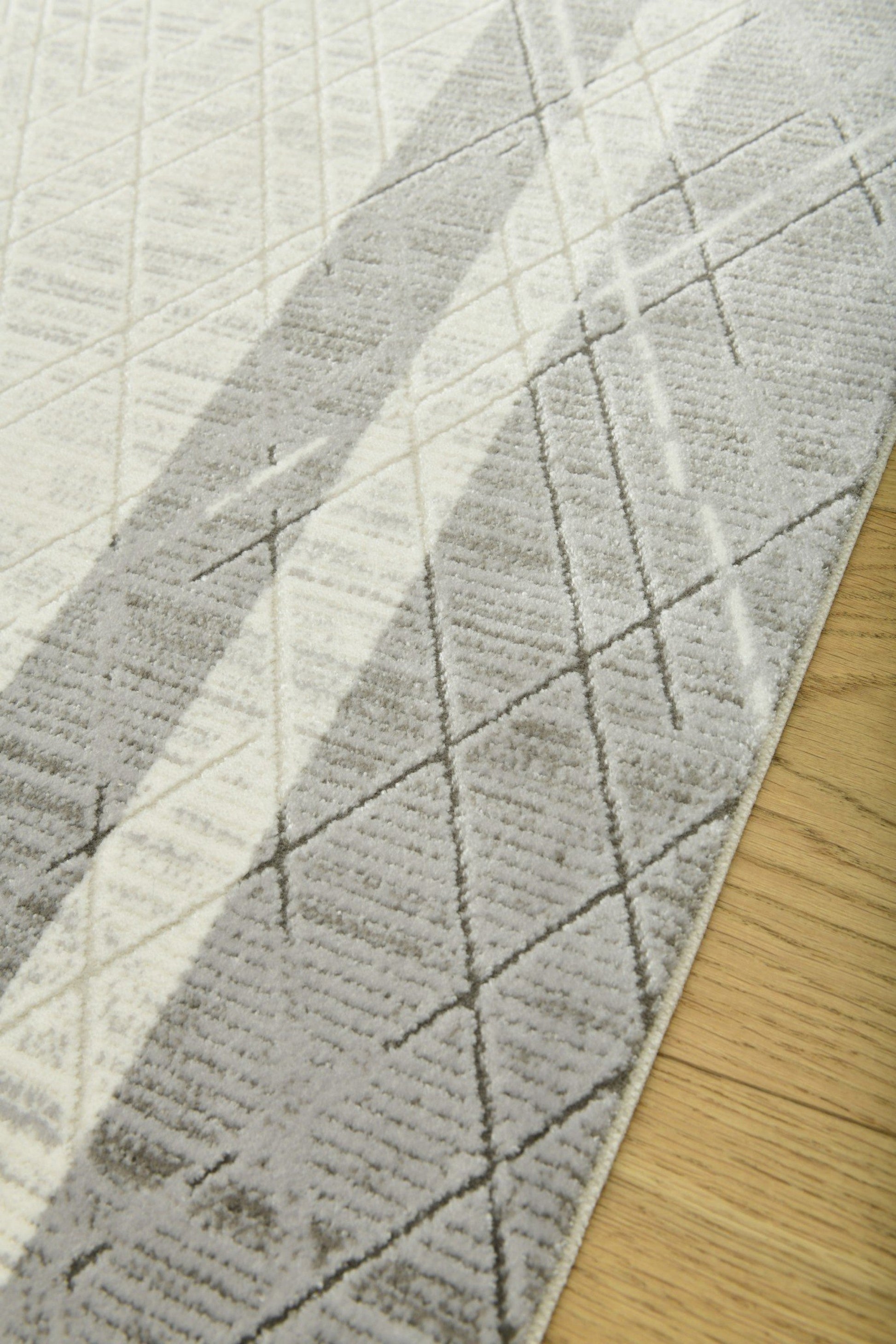 Galata LjusGeometri är en modern matta med subtil elegans och geometrisk lätthet. Den ljusa basen bryts upp av ett diskret korsat linjemönster och en mild ram i grå toner, vilket skapar en känsla av djup utan att ta över rummet.