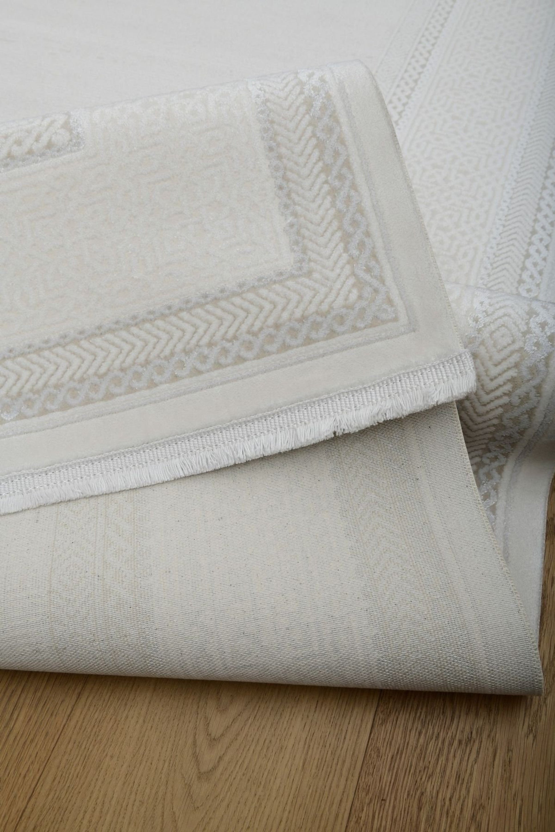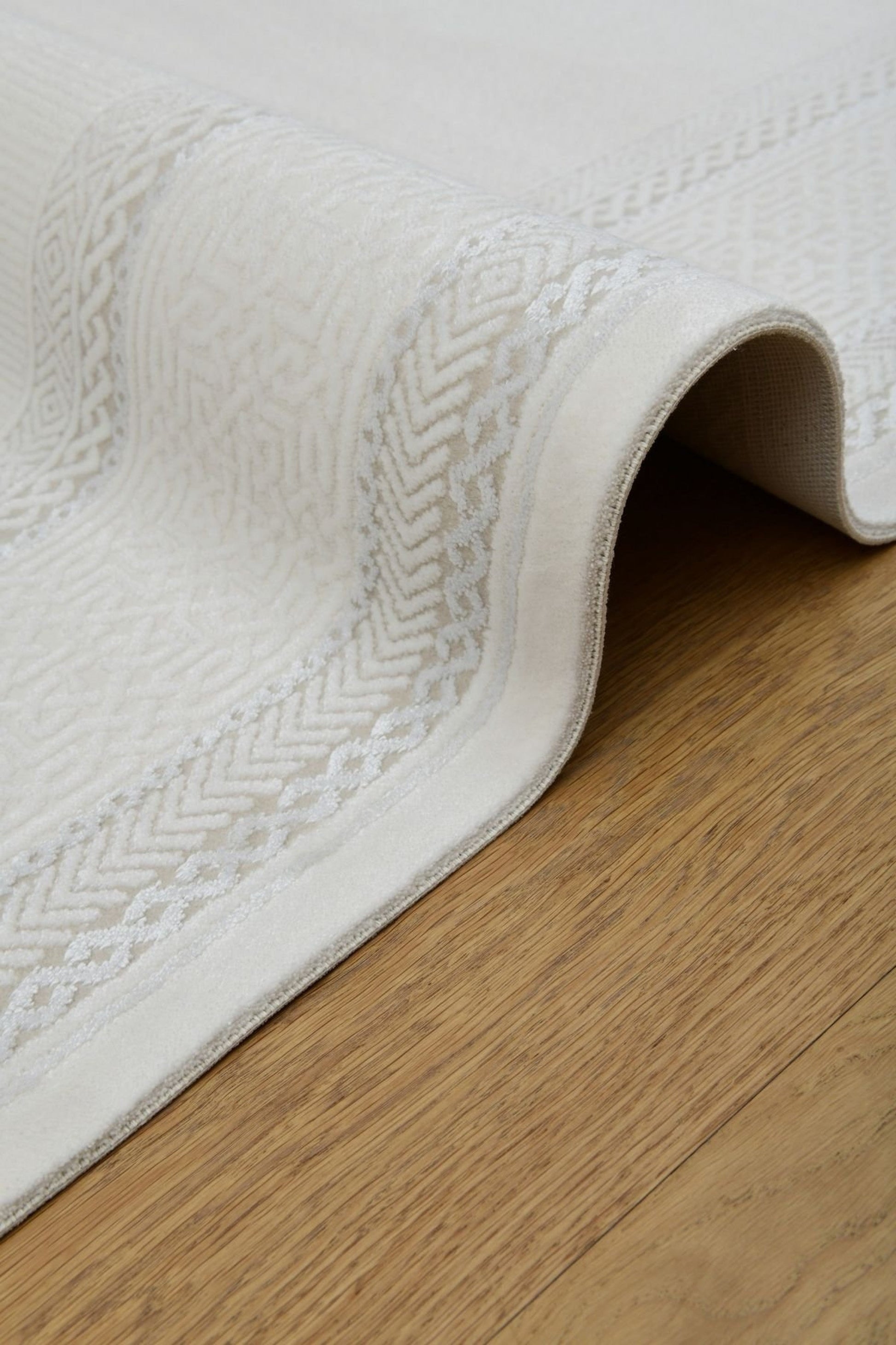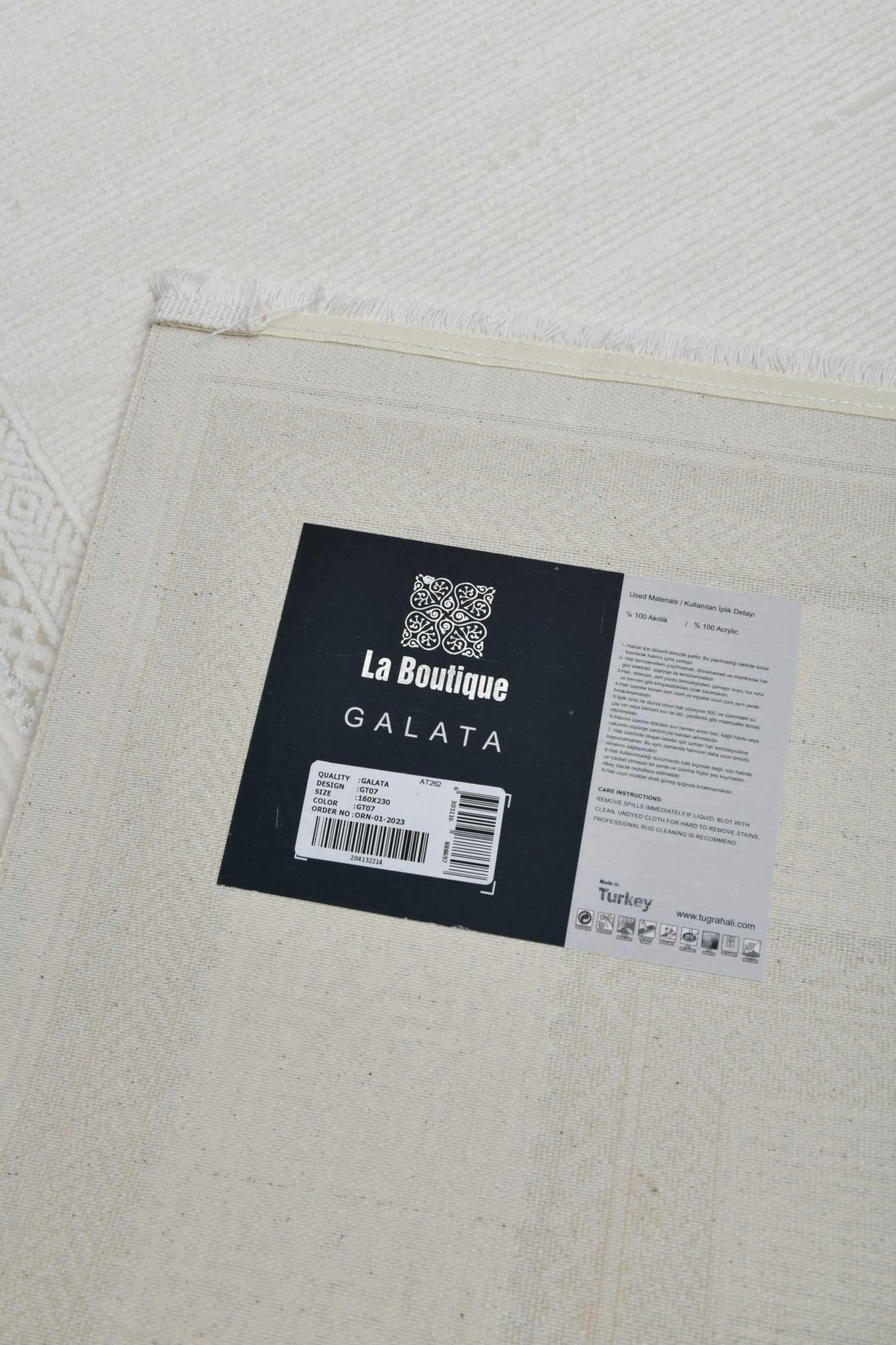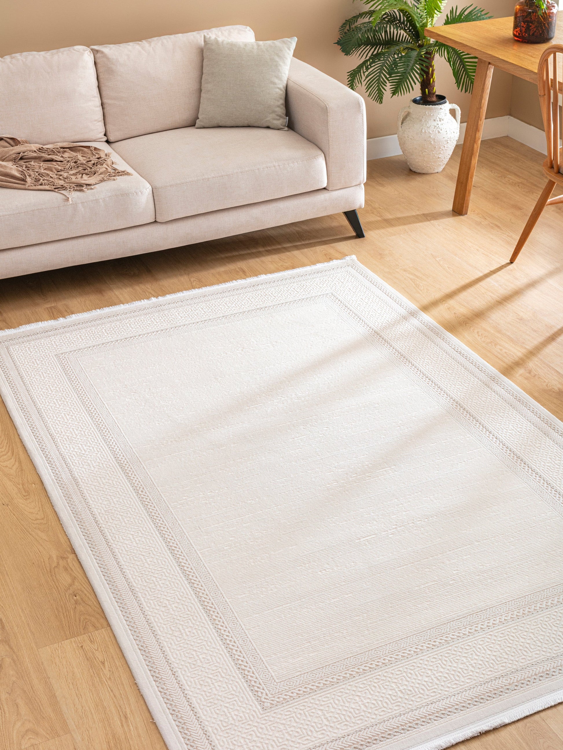 Galata LjusRam kombinerar subtil klassicism med modern minimalism. Den diskreta inramningen med geometriska detaljer smälter vackert ihop med den nästan enfärgade ytan i mjuk elfenbensvit nyans. Resultatet är en matta som lyfter rummet utan att ta över.