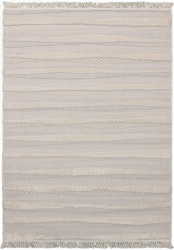 Selanik Natur – Handvävd Beige Matta med Klassisk Frans och Skandinavisk Look
