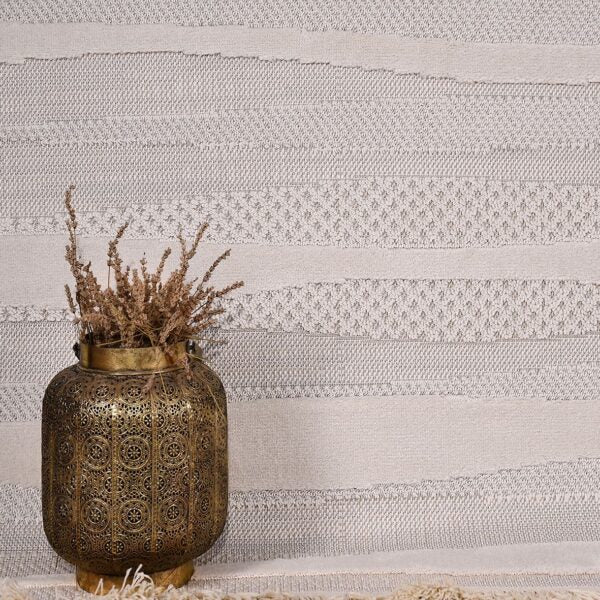 Izmir Clay utstrålar en jordnära elegans med sitt harmoniska randmönster och subtila strukturspel. Mattan är vävd i olika texturerade band som skapar ett lugnt men livfullt uttryck – perfekt för hem som värdesätter balans och naturlig stil.