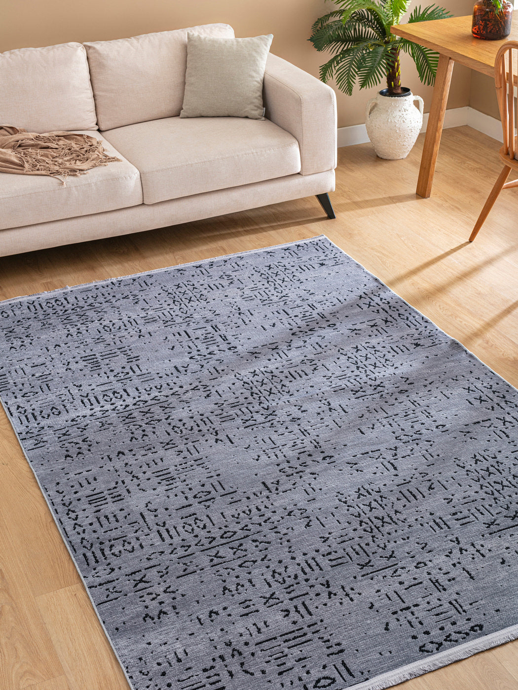 Luna NomadGrå är en matta som utstrålar djup och autenticitet. Den mörkgrå botten kombineras med ett svart, handritat mönster inspirerat av nomadiska symboler – perfekt för dig som vill skapa en dramatisk men jordnära känsla i ditt hem.