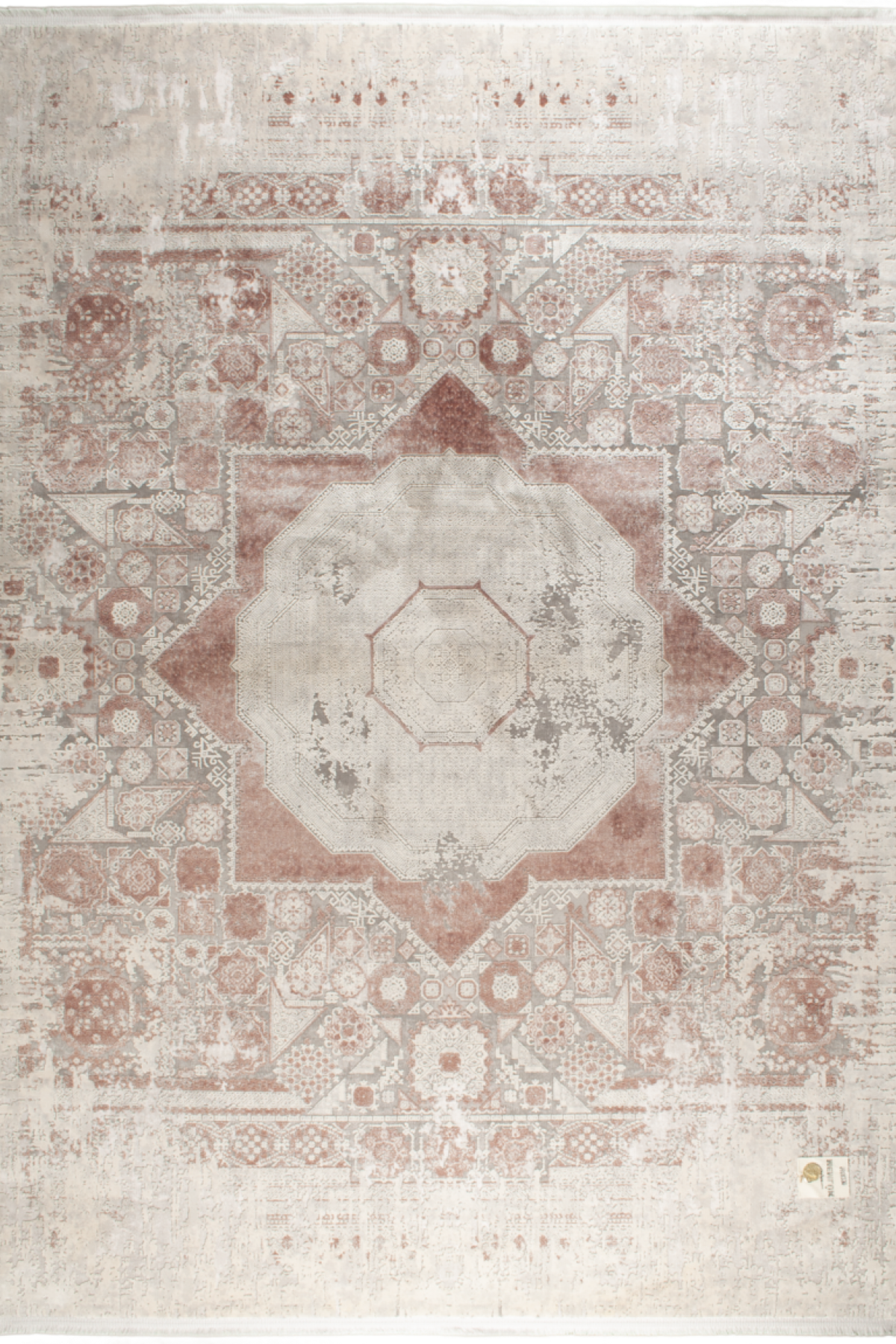 Memlük Rosdamm kombinerar den ikoniska oktagonala mittformen med ett utsökt mosaikmönster som strålar av tidlös orientalisk charm. Den dammiga rosan och ljusgrå färgpaletten skapar en varm och mjuk kontrast – perfekt för rum som söker både elegans och lugn.