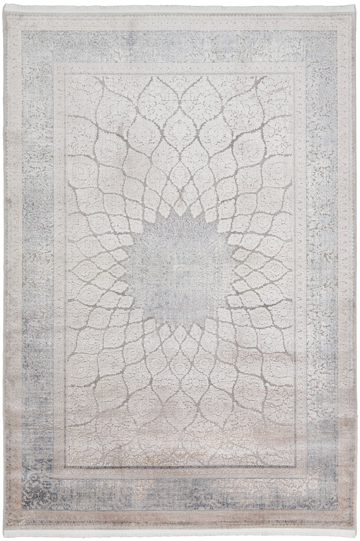 De blekblå och ljusgrå nyanserna skapar en sval men mjuk känsla, vilket gör denna matta till en perfekt grund i skandinaviska interiörer med ljus färgpalett.