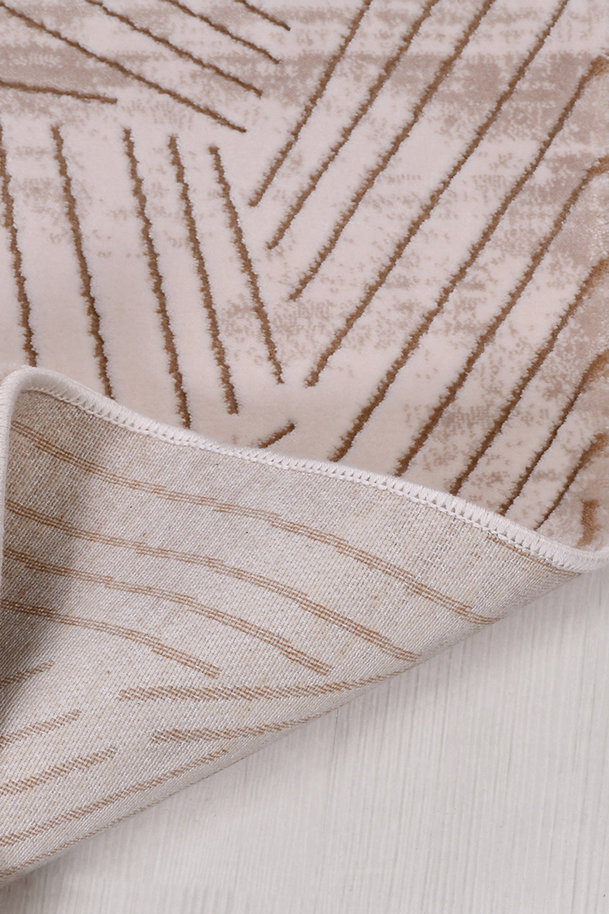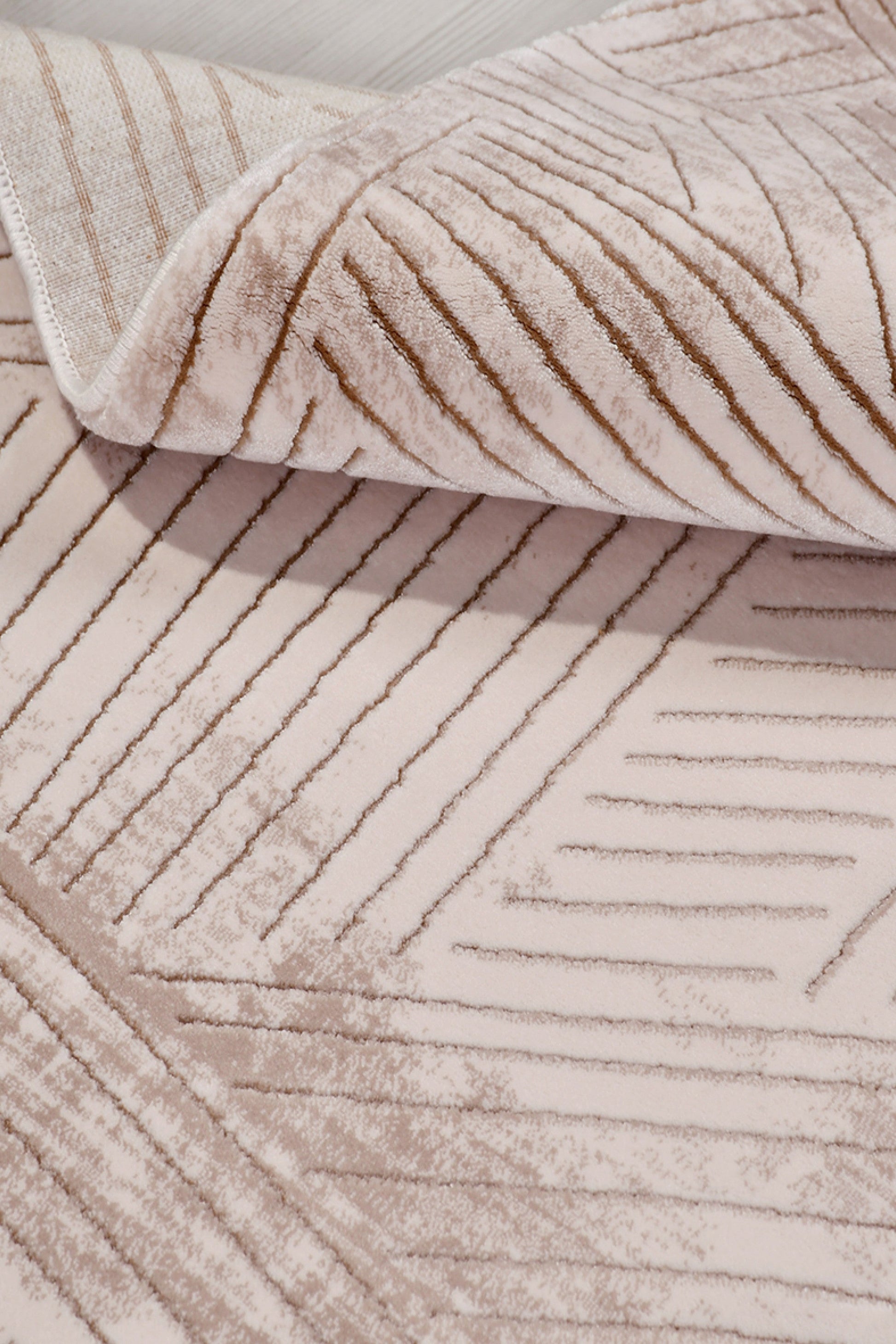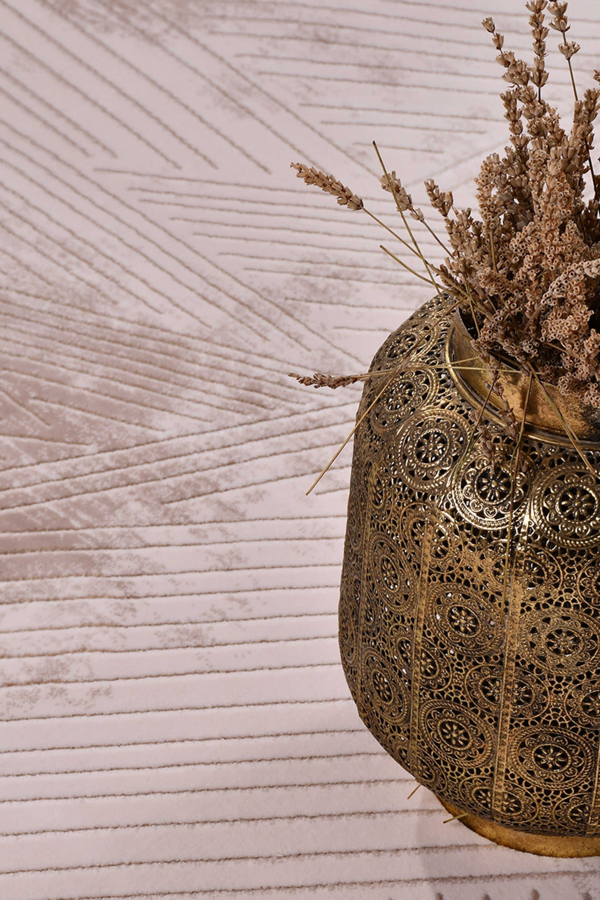 Ortaköy SandRelief för tankarna till mjuka sanddynor med sina diagonala linjer och subtila skiftningar i beige och sand. Det präglade mönstret ger mattan ett levande djup som förändras med ljuset och ger en känsla av rörelse och lugn samtidigt.
