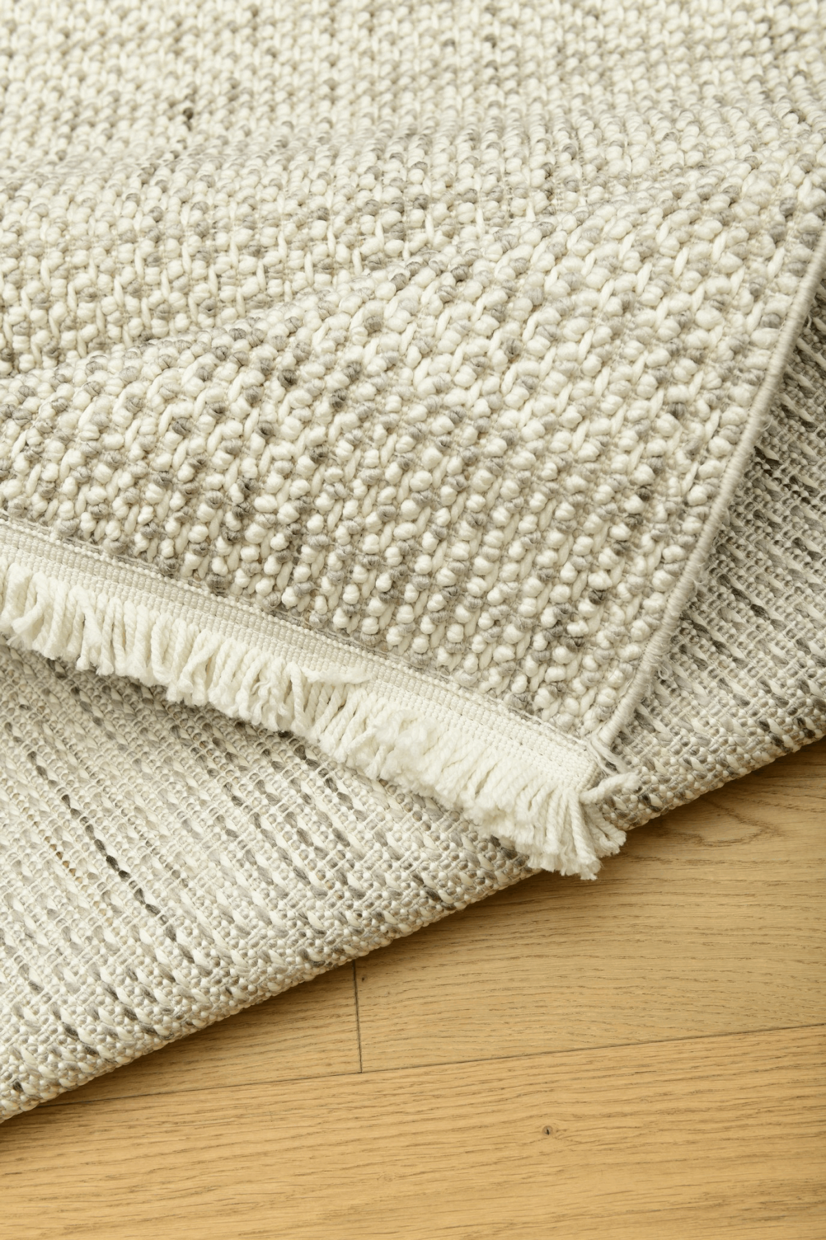 Selanik Natur – Handvävd Beige Matta med Klassisk Frans och Skandinavisk Look