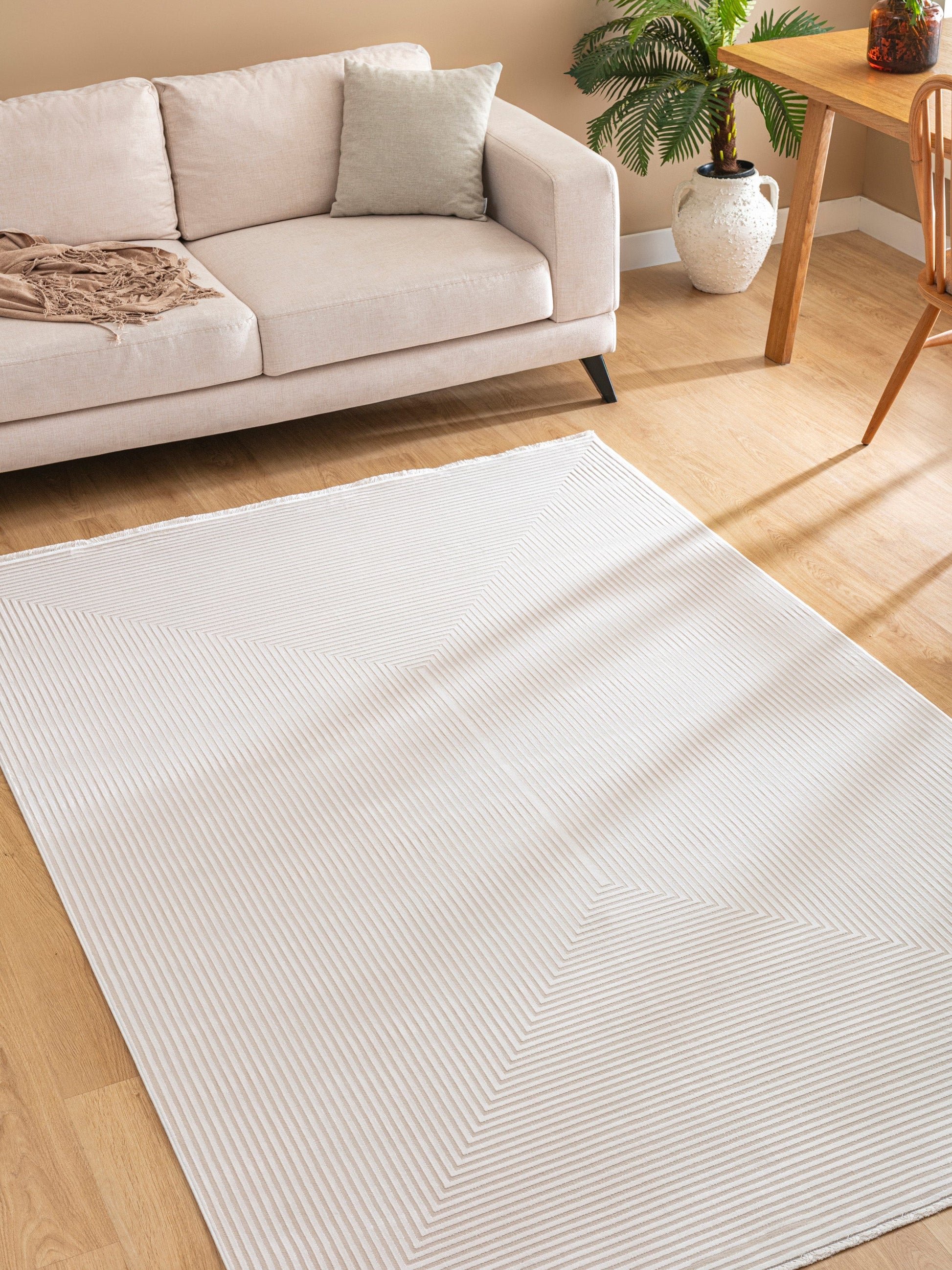 Renaissance LjusPunkt skapar ett optiskt djup med sina precist arrangerade linjer som strålar från mattans mitt. Den ljusa färgpaletten förstärker illusionen av rymd och harmoni – perfekt för dig som vill ha en ren, strukturerad och elegant känsla i hemmet.