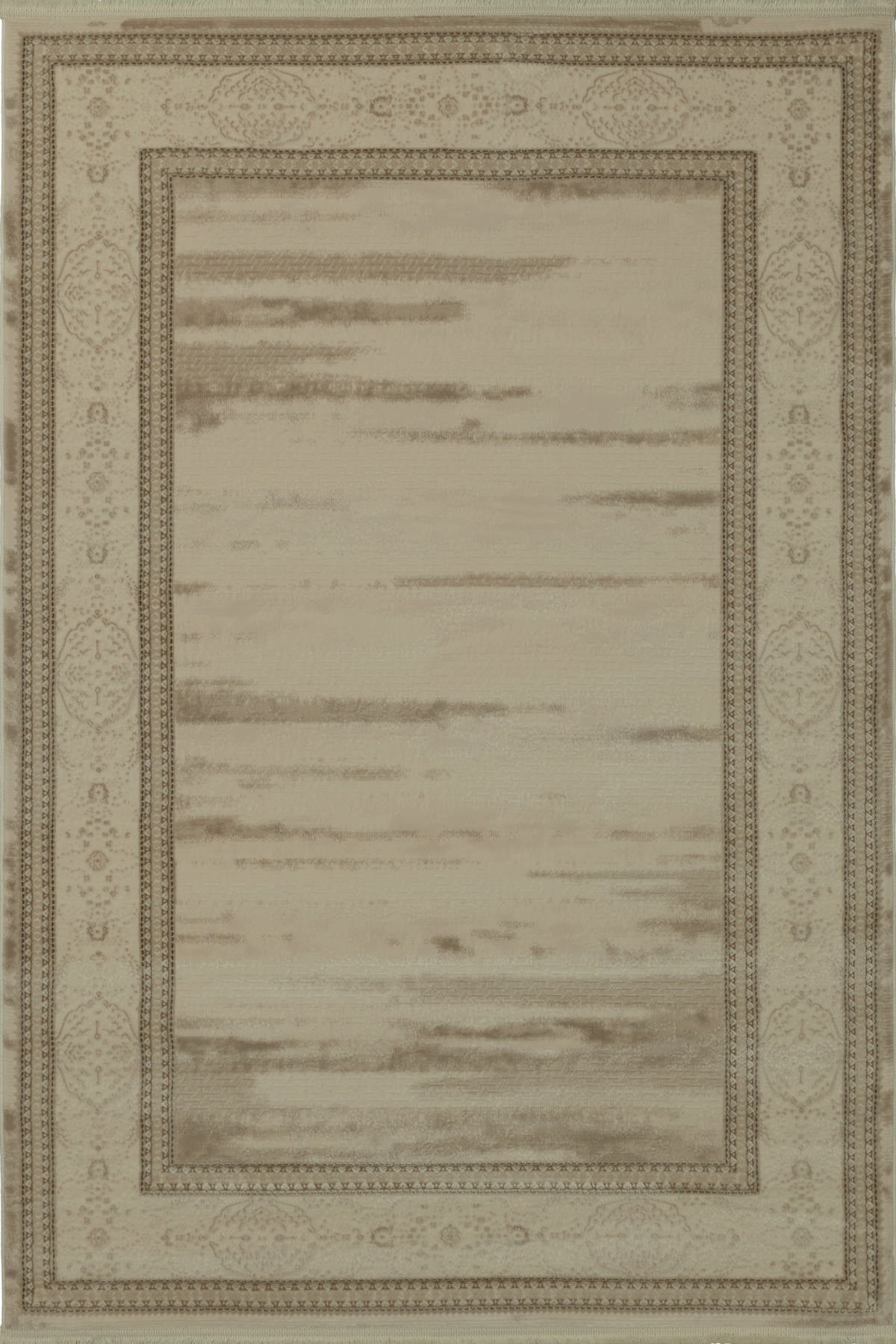 Selanik Natur – Handvävd Beige Matta med Klassisk Frans och Skandinavisk Look